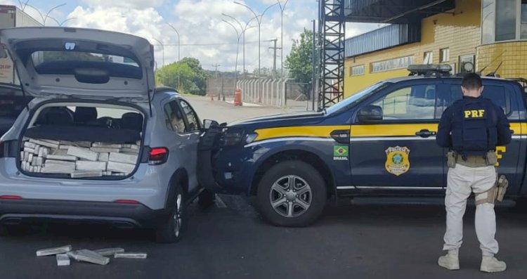 No interior do veículo, a PRF encontrou 274,3 quilos de maconha escondidos no porta-malas e sob o banco traseiro. O carro ainda apresentava placas falsas, sendo identificado como veículo clonado.