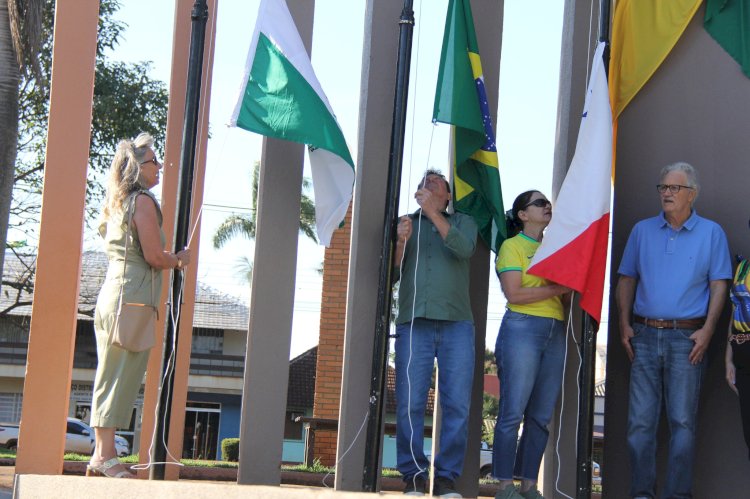 No início da manhã desta quarta-feira (03), na Praça da Bíblia, aconteceu o terceiro dia da programação da Semana da Pátria, com o hasteamento das bandeiras, pronunciamento de autoridades e apresentações cívicas. Na oportunidade, houve a participação de alunos da Escola Municipal Leonhard Pinz e dos CMEI’s ABC e Asilda Röpke.