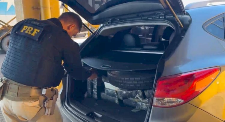 Dentro do automóvel, os policiais encontraram diversos fardos de maconha prensada, que ocupavam o porta-malas e grande parte do espaço interno.