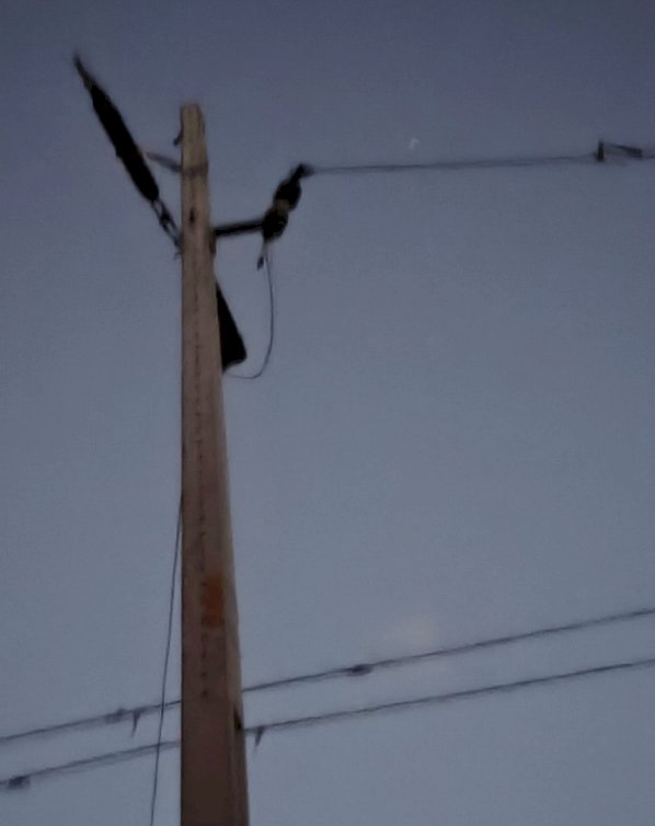 A equipe de manutenção que atuou próximo à fecularia informou que o reparo completo da rede depende de uma equipe especializada, com caminhão guincho ou guindaste, devido ao peso dos cabos e ao dano em um dos postes de sustentação.