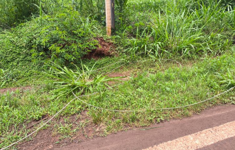 Técnicos informaram que o problema se estende a um cabo de espessura considerável, que abastece a região da linha Neuhaus, o aterro sanitário e possivelmente a localidade de São José do Guaçu. No local indicado, a reportagem confirmou que o cabo da rede de alta tensão estava caído próximo à estação de captação de água da associação.